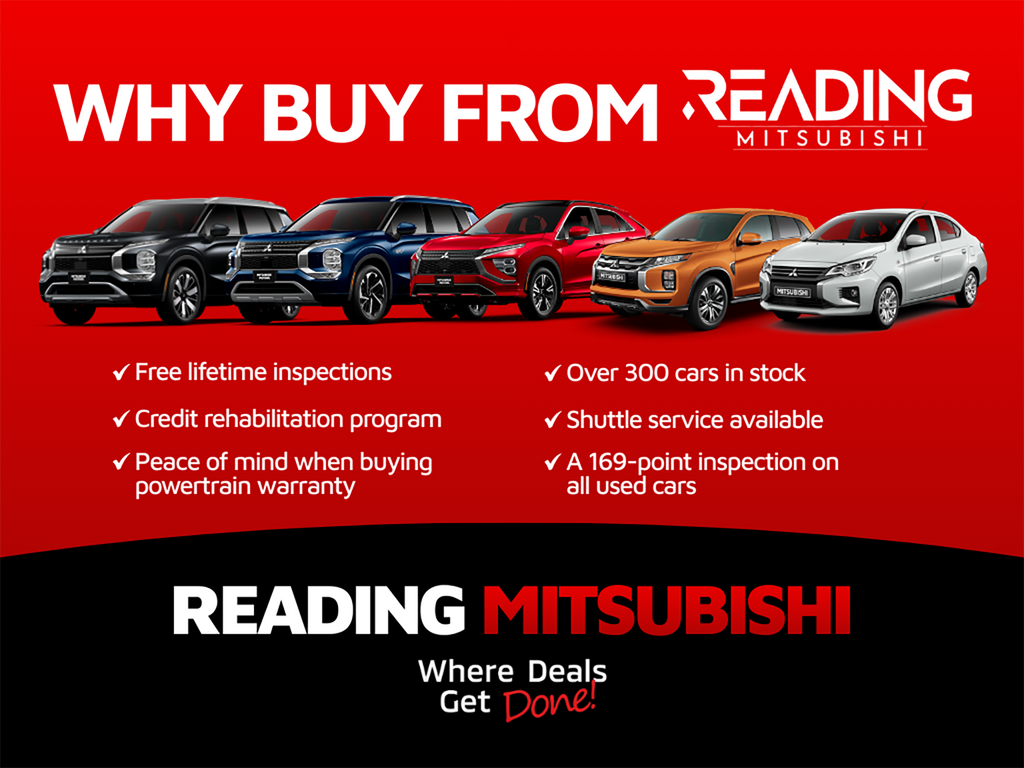 Reading Mitsubishi delivers honest, customer-focused car buying with a transparent buying experience, flexible financing, and a friendly team that treats you like family. We offer new Mitsubishi models and trusted pre-owned options, each vehicle vetted to ensure confidence in your purchase. Visit us in Reading, PA, and experience why drivers continue to choose us for quality, value, and genuine local care.