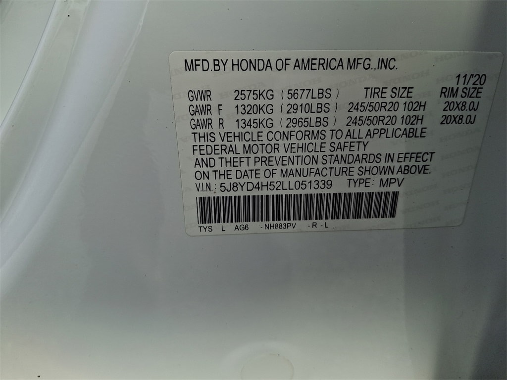 - Front tires: 245/50HR20.0