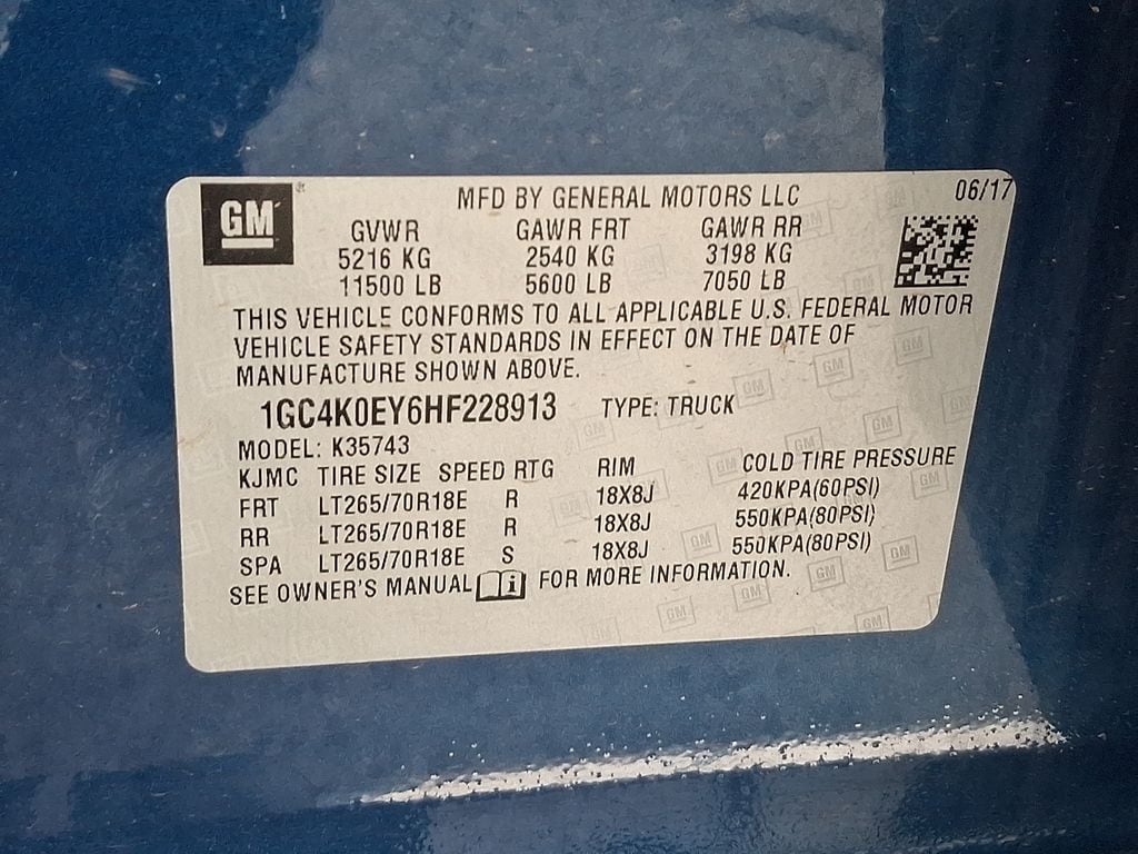 - Front tires: 265/70SR18.0E