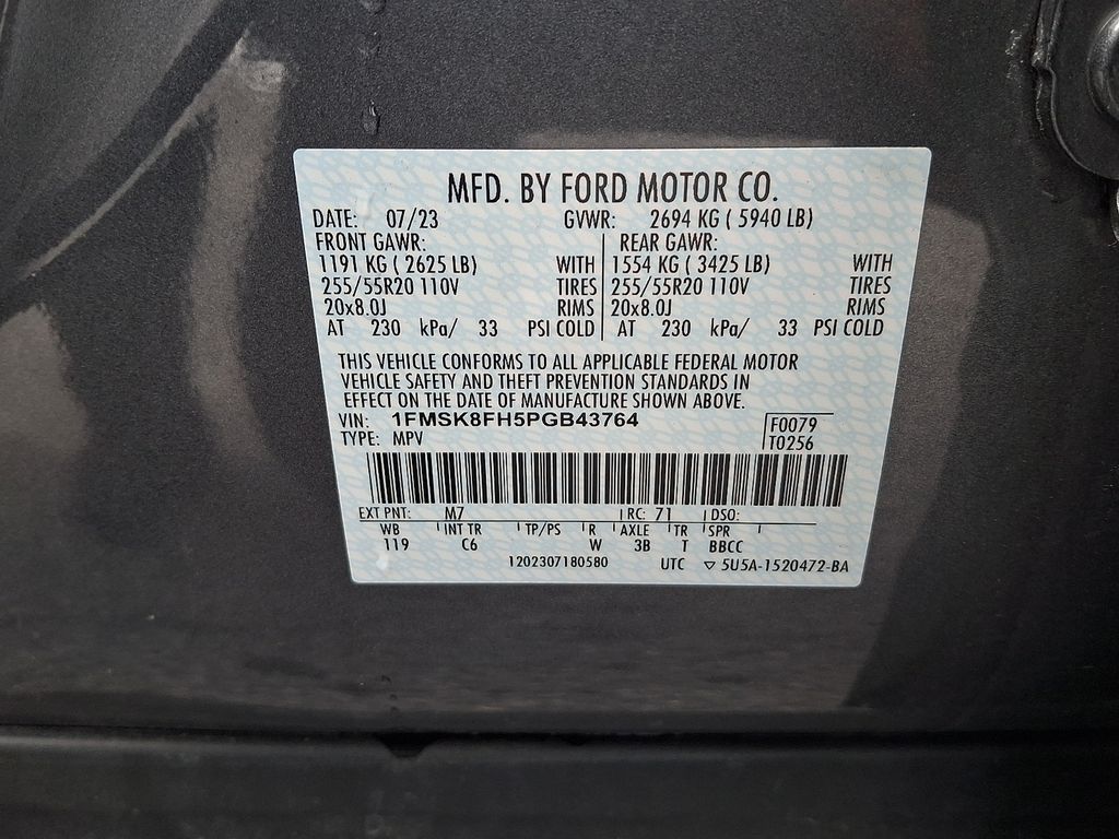 - Rear tires: 255/55VR20.0