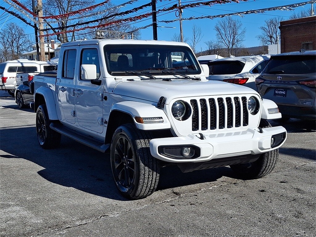 Take command of every road and trail in this 2023 Jeep Gladiator High Altitude, finished in bold Bright White Clearcoat and built to deliver authentic Jeep capability with premium luxury. Powered by a robust 3.6L V6 and proven 4WD, it features Jeeps Command-Trac system, all-terrain readiness, and legendary Trail Rated toughness for true off-road confidence. The High Altitude trim elevates the experience with body-color fender flares, leather-trimmed seating, advanced Uconnect infotainment with navigation, and a powerful Alpine premium audio system that brings concert-quality sound to every drive. Removable doors and roof panels add the unmistakable open-air freedom only a Jeep can offer, while modern safety and convenience features keep you comfortable and connected. Complete with a lifetime Pennsylvania State inspection and emissions inspection at the time of sale, this Gladiator High Altitude delivers the perfect blend of rugged performance, upscale style, and everyday versatility.