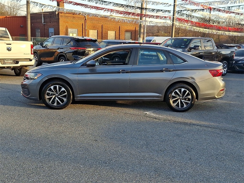 Volkswagen 2024 Jetta 1.5T S delivers a refined blend of efficiency, modern styling, and everyday practicality in a compact sedan ideal for commuting, errands, and weekend drives. Its sleek grey exterior pairs with a thoughtfully designed interior featuring cloth seating, a driver focused cockpit, and a touchscreen infotainment system with Apple CarPlay and Android Auto for seamless smartphone integration. The responsive turbocharged 1.5L engine provides engaging performance while maintaining excellent fuel economy, and its compact dimensions make city driving and parking effortless. Standard safety features such as a rearview camera, forward collision warning, and automatic emergency braking enhance confidence on the road. With Reading Mitsubishis 151-point inspection, lifetime Pennsylvania state inspections, and comes with Pennsylvania state emissions and inspection, this Jetta 1.5T S combines dependable performance, modern convenience, and style for drivers seeking a practical and enjoyable compact sedan.